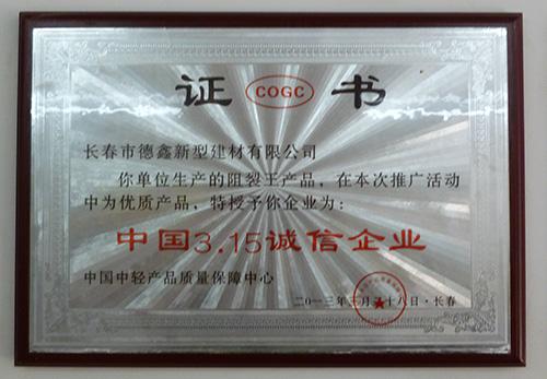 - 您的位置: 首頁(yè) > 關(guān)于德鑫 > 榮譽(yù)資質(zhì) > 中國315誠信企業(yè)