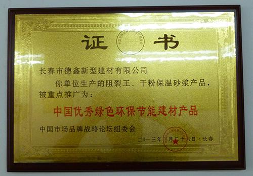 優(yōu)秀綠色環(huán)保節能產(chǎn)品證書(shū)